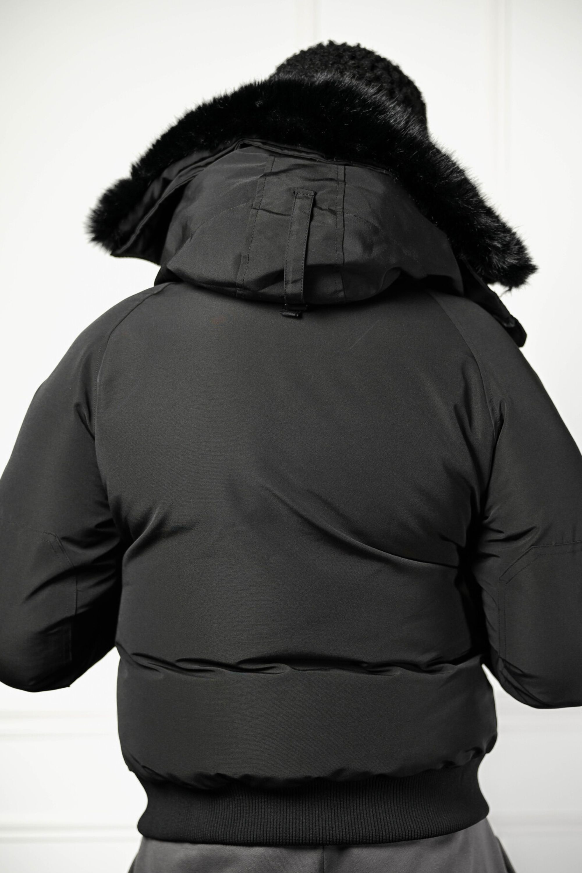 Abrigo de invierno negro con capucha de piel sintética Jerone