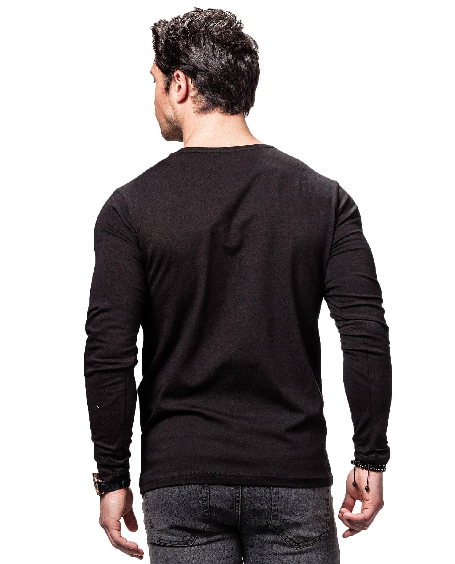Camiseta de manga larga negra YOUNG & RICH. Escote redondo, cómodo material elástico!