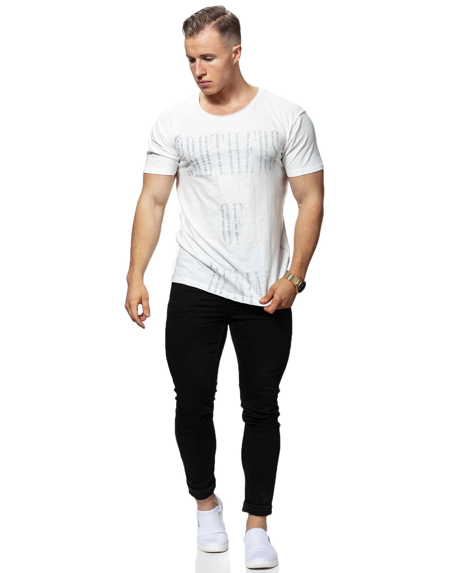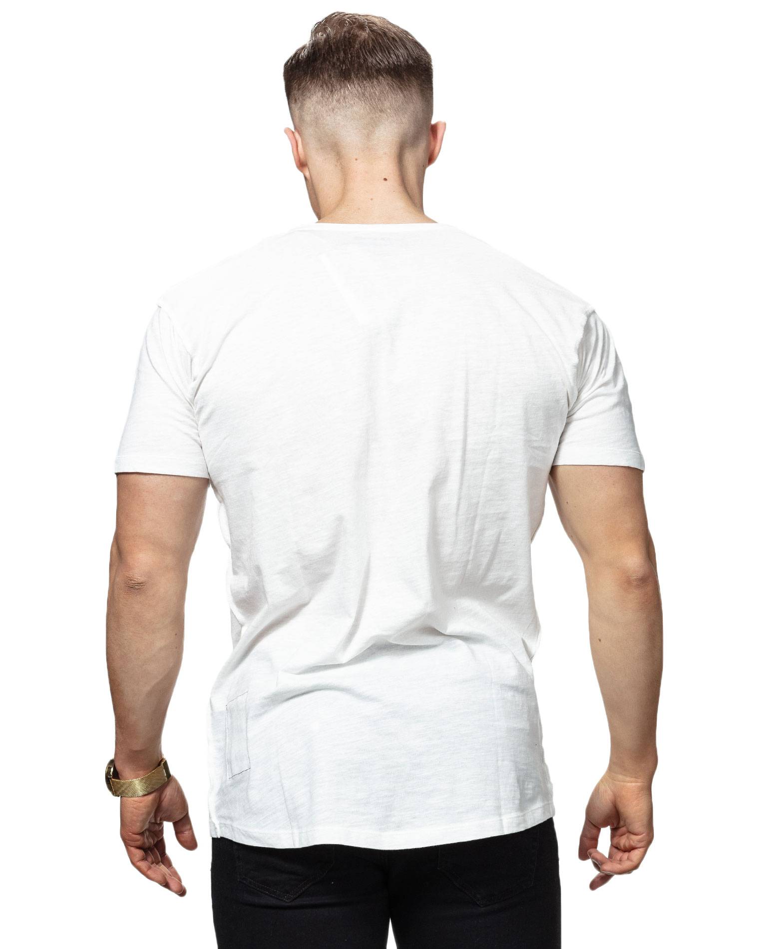 Camiseta JACK & JONES blanca. Un modelo un poco más holgado que combina muy bien con jeans negros y una chaqueta de cuero en primavera. La camiseta tiene un estampado interior que se ve por la parte delantera.