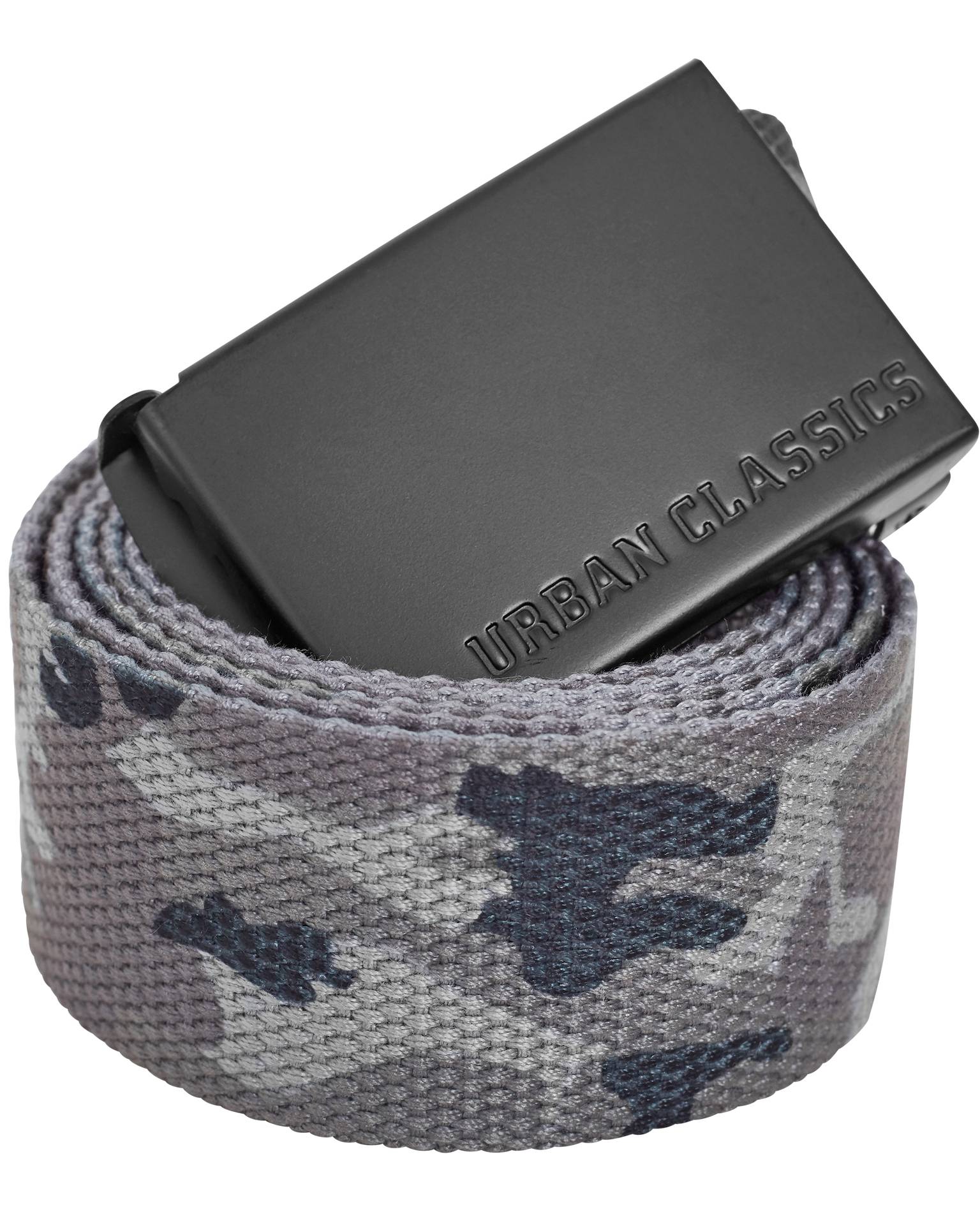 URBAN CLASSICS Cinturón de tela gris con estampado militar y hebilla metálica.