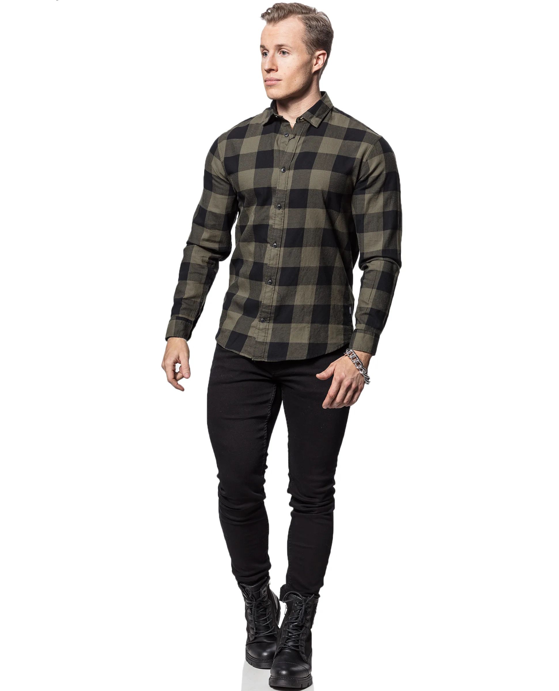 - Ruta del producto Página delantera Mangas largas para hombres Gingham Twill Shirt Green Jack & Jones
