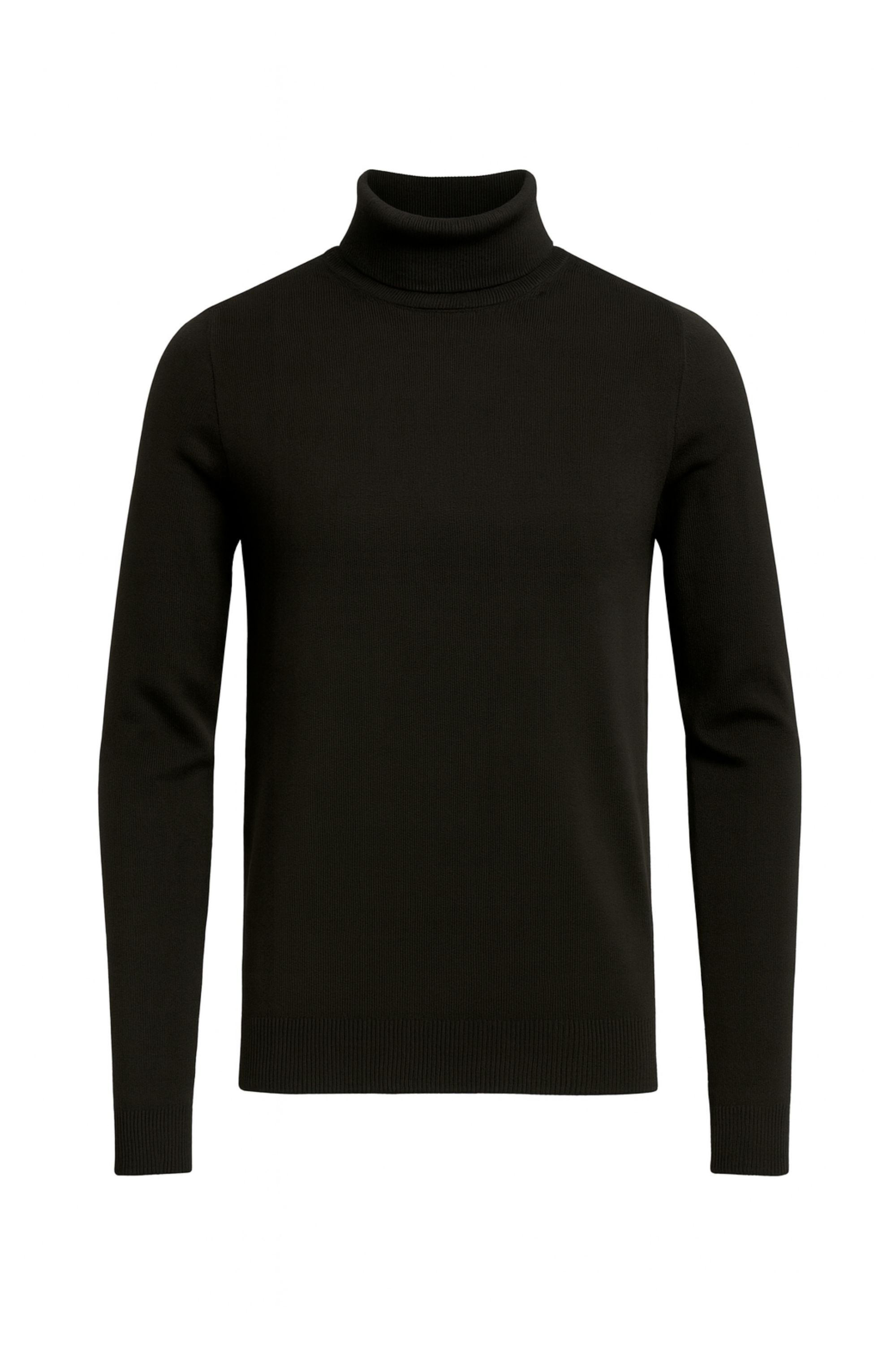 - Ruta del producto Página delantera Mangas largas para hombres Jersey elástico negro con cuello alto JERONE