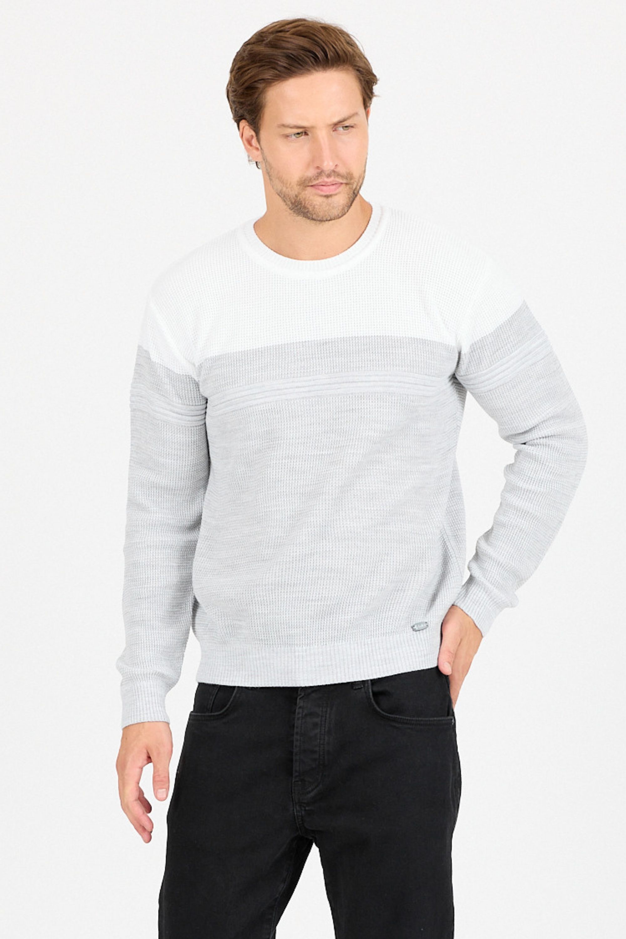 - Ruta del producto Página delantera Suéteres de hombre Jersey suave en gris y blanco Jerone