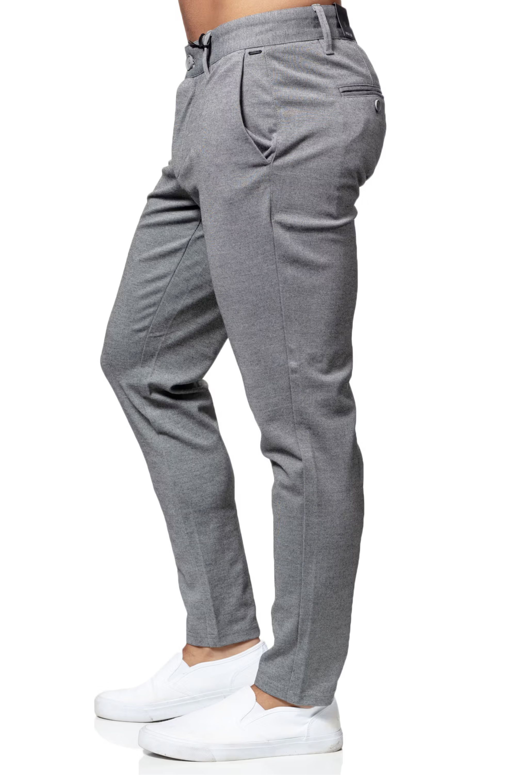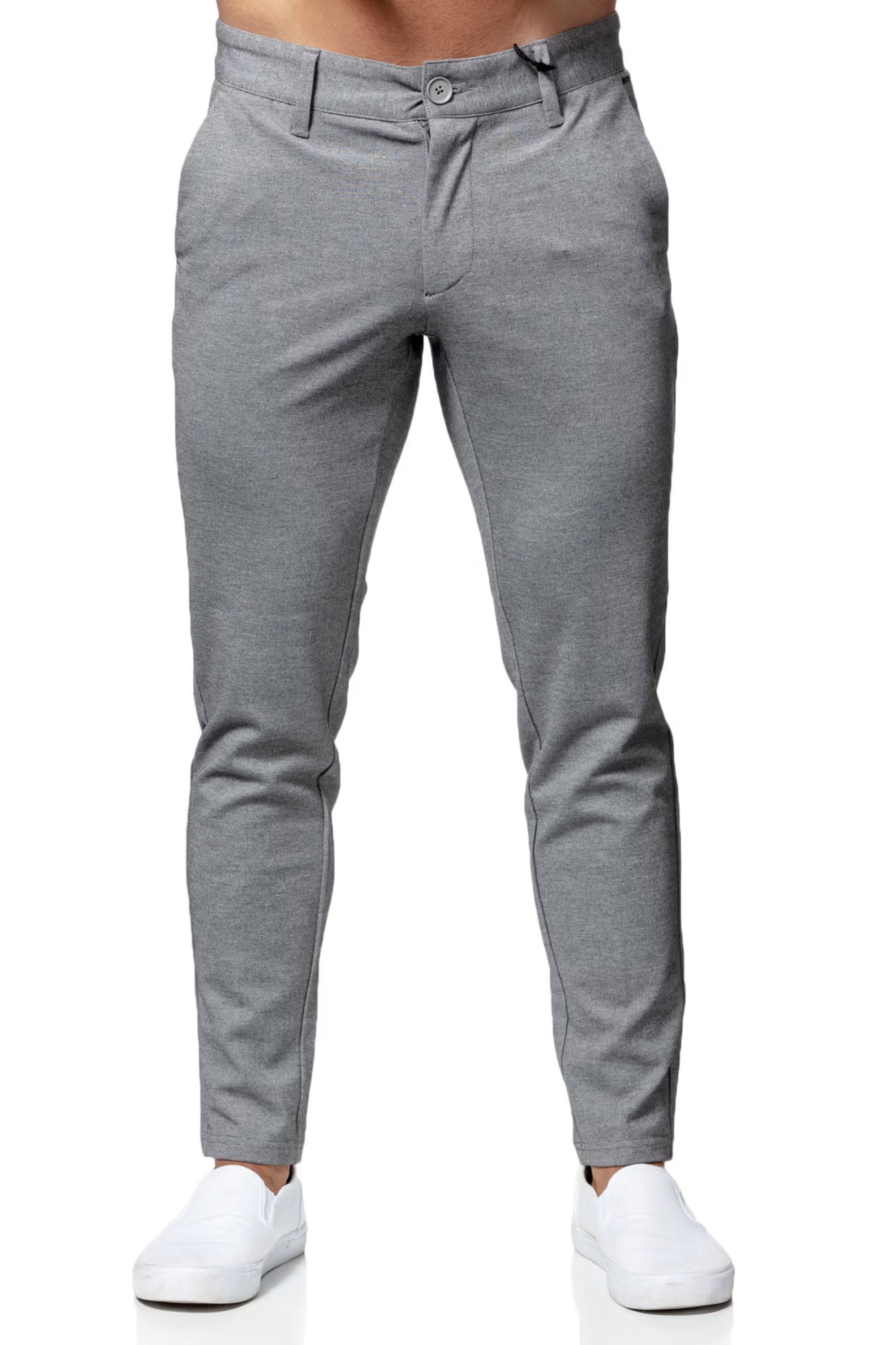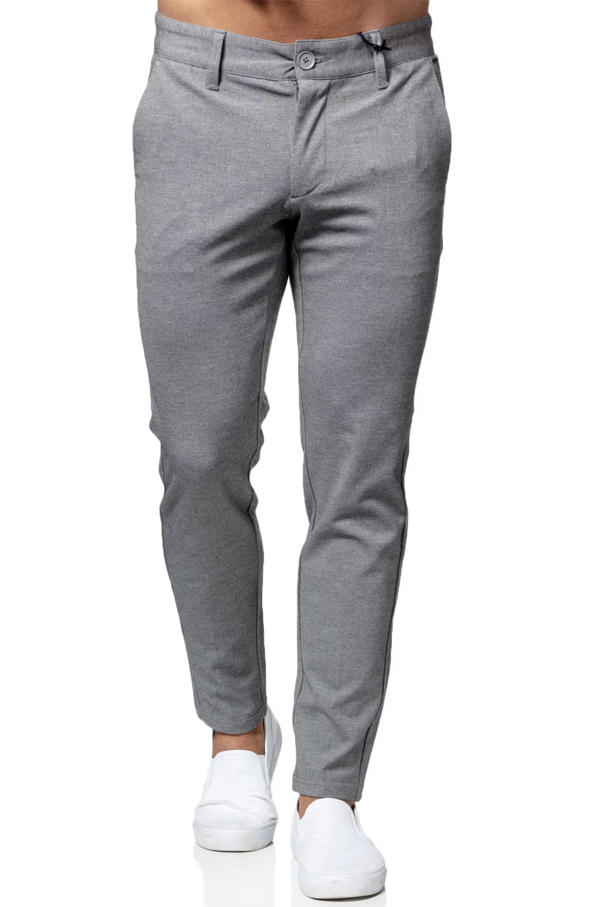 Pantalones grises ONLY & SONS. Material suave y elástico. Dos bolsillos delanteros, cierre con cremallera en la bragueta. Bolsillos cónicos. Pantalones muy frescos y elegantes para llevar a diario y de forma informal Largo L32.