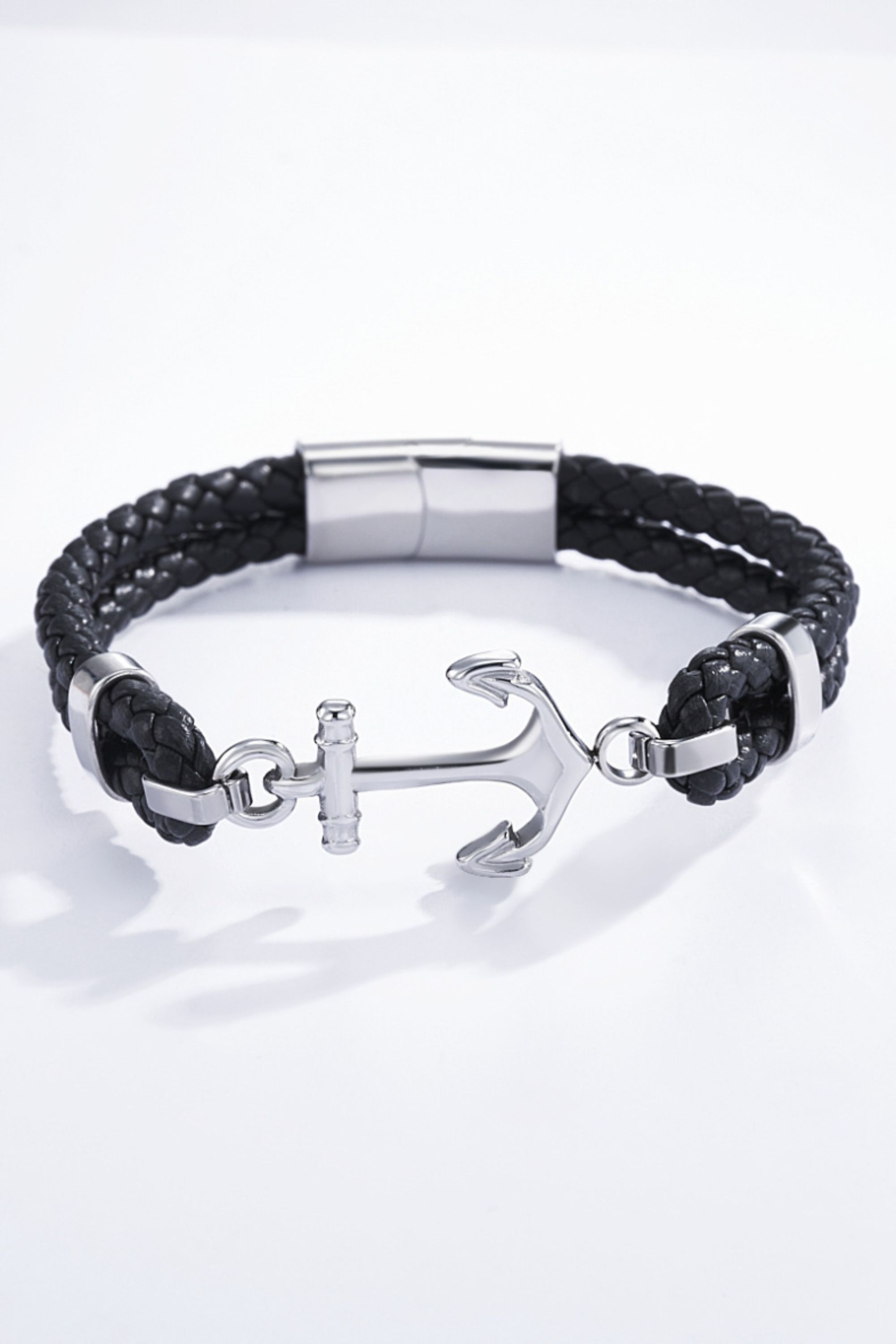 - Ruta del producto Página delantera Novedades Pulsera de ancla negra de plata JERONE JEWELLERY