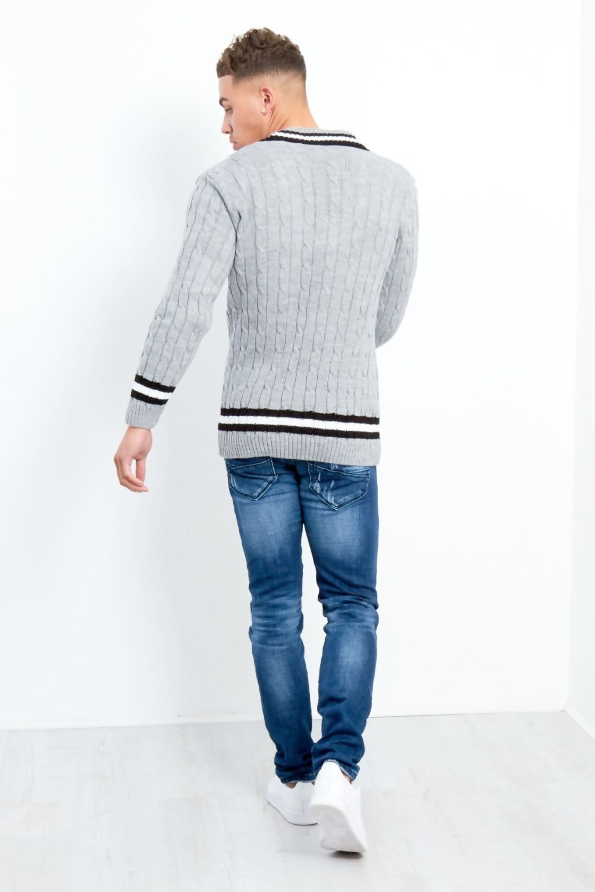 - Ruta del producto Página delantera Mangas largas para hombres Suéter gris con cuello en V JERONE