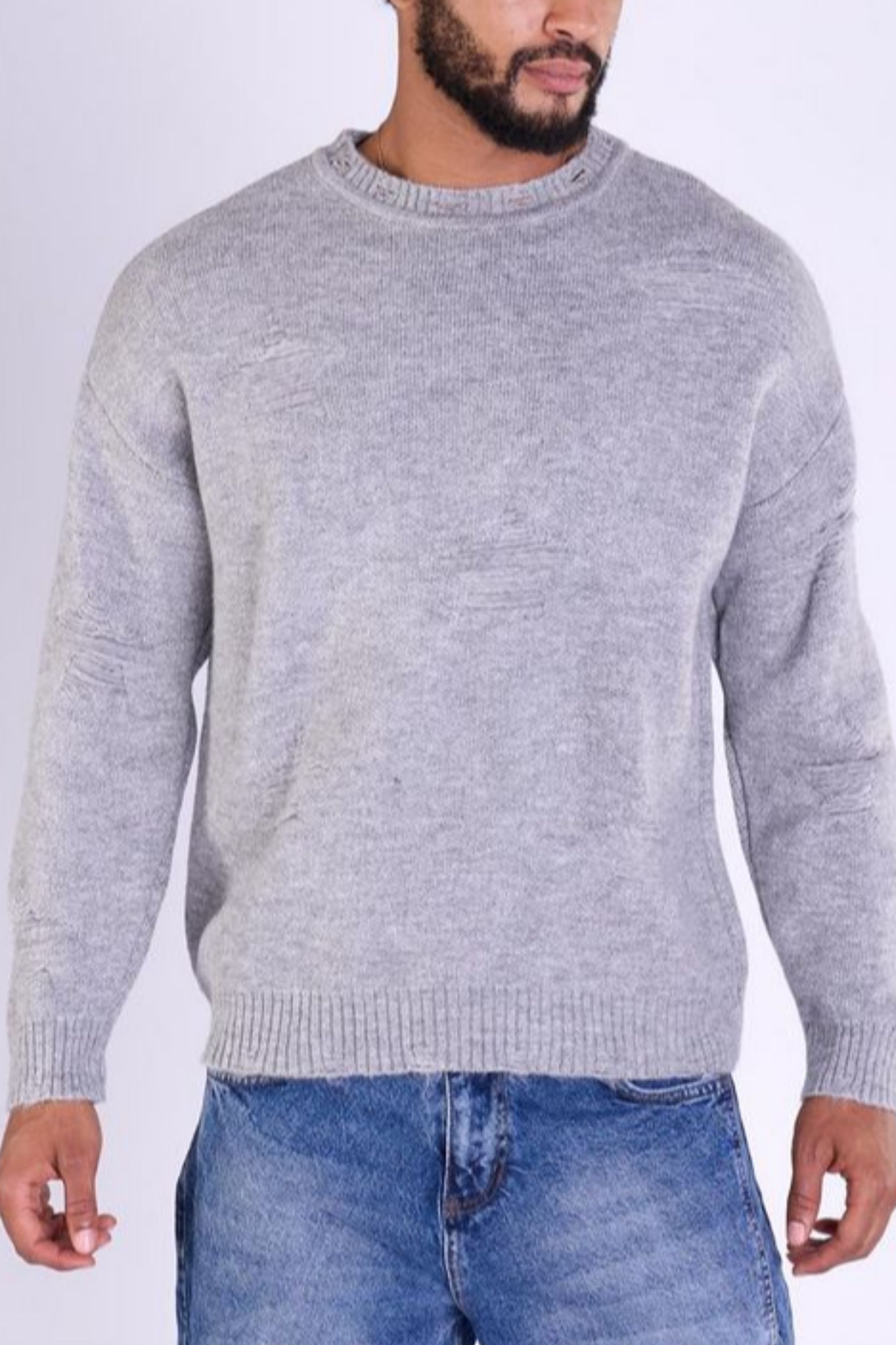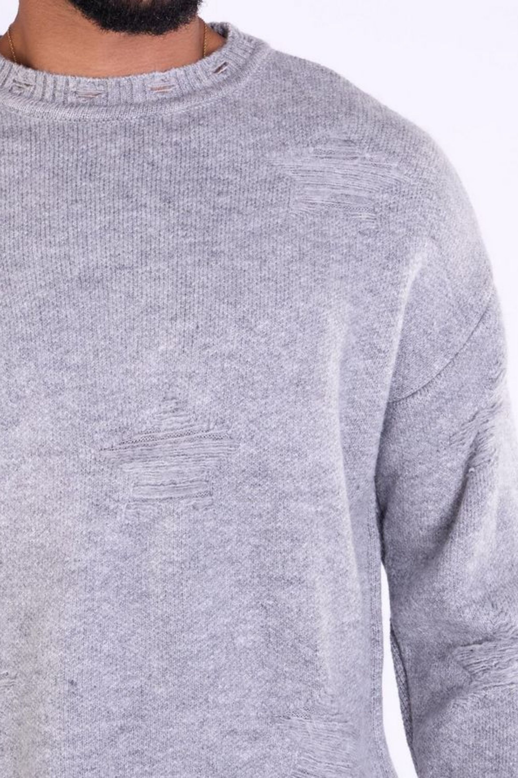Suéter gris suave con textura rota Jerone